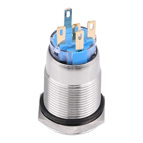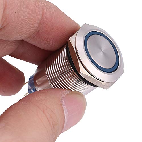 KSTE Pulsante 12V Interruttori, Pulsante LED, 19 Millimetri 12V Impermeabile in Acciaio autobloccante Latching Interruttore di Pulsante LED Blu