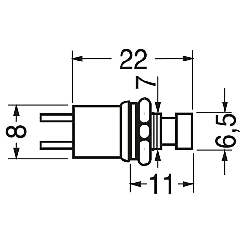 Pulsante unipolare con tasto rosso con contatto normalmente chiuso, foro di montaggio diametro7mm - 250V 1A