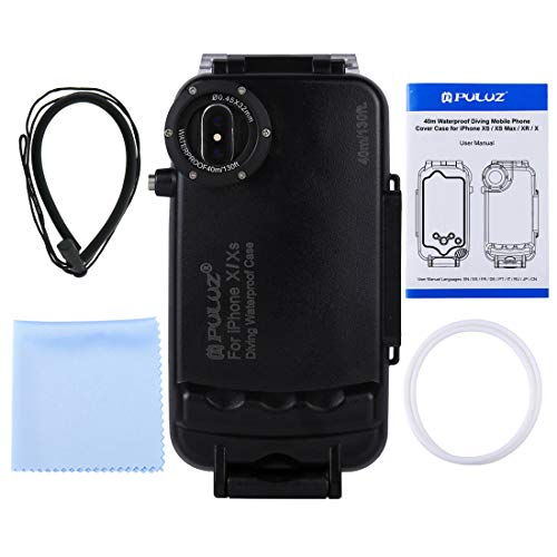 PULUZ - Custodia impermeabile per iPhone X/iPhone XS 40 m per immersioni subacquee, antiurto, a prova di neve, resistente allo sporco, IP68, custodia protettiva completamente sigillata (nero)