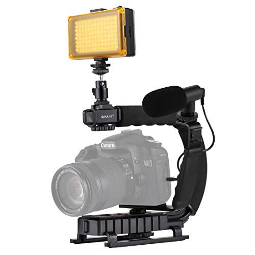 Puluz - Staffa stabilizzatore portatile a forma di U/C, con luce LED da studio e microfono per riprese video, con testa treppiede a slitta per tutte le fotocamere SLR e videocamere DV domestiche
