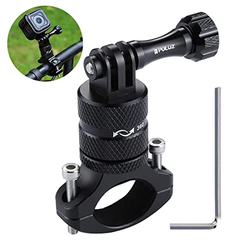 PULUZ Supporto per Adattatore Manubrio in Alluminio con Rotazione a 360 Gradi con Vite per Gopro, DJI OSMO Action, Xiaoyi e Altre Action Cam,Nero