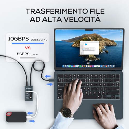 PULWTOP Hub USB C Alimentato,4 Porte USB C 10Gbps 3.2 Generation,4° Hub USB-C Per Il Trasferimento Dati e La Ricarica,Per Laptop/MacBook Pro/Air/iPad Pro/Dell/HP/suface/IPhone 15,ecc