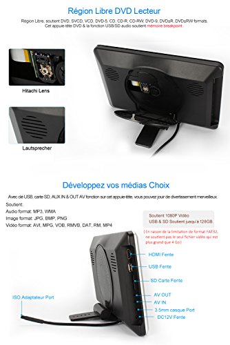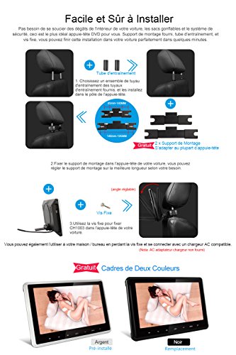 Pumpkin 21-CH1003B - Lettore CD Lettore DVD auto poggiatesta (10,1 schermo LCD "HD TFT, Pulsanti a Tocco, SD, USB, HDMI, discoteca) di supporto video 1080p 30fps / 32 bit Giochi / Remote / per uso domestico, argento + nero Marco universale