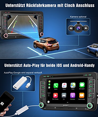 Ampia gamma di funzioni: navigazione GPS, vivavoce Bluetooth e riproduzione di musica, migliore ricezione radio FM, DAB+, chiavetta USB e scheda di memoria MicroSD (fino a 128 GB), OBD2, telecomando da volante, telecamera per retromarcia con connettore RCA