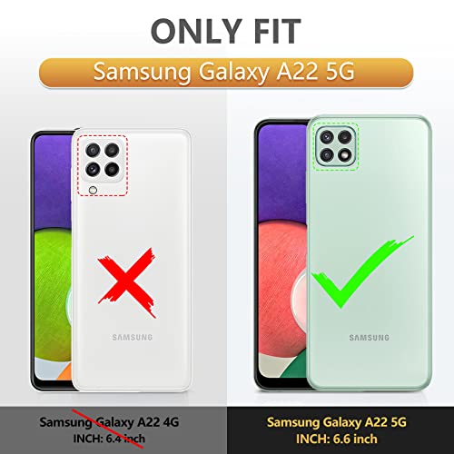 ☎【Vestibilità Perfetta Galaxy A22 5G】: Cover trasparente perfettamente adatta per Samsung Galaxy A22 5G, supporta la ricarica wireless. Ritagli esatti per tutte le porte e i pulsanti, facile accesso a tutte le funzioni originali senza rimuovere la custodia.