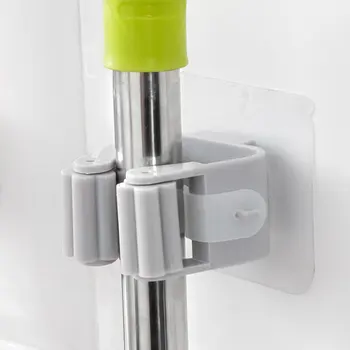 Non Punch Adhesive Wall Mounted Mop Holder Storage Broom Hanger Clip Seamless Mop Hook Bathroom