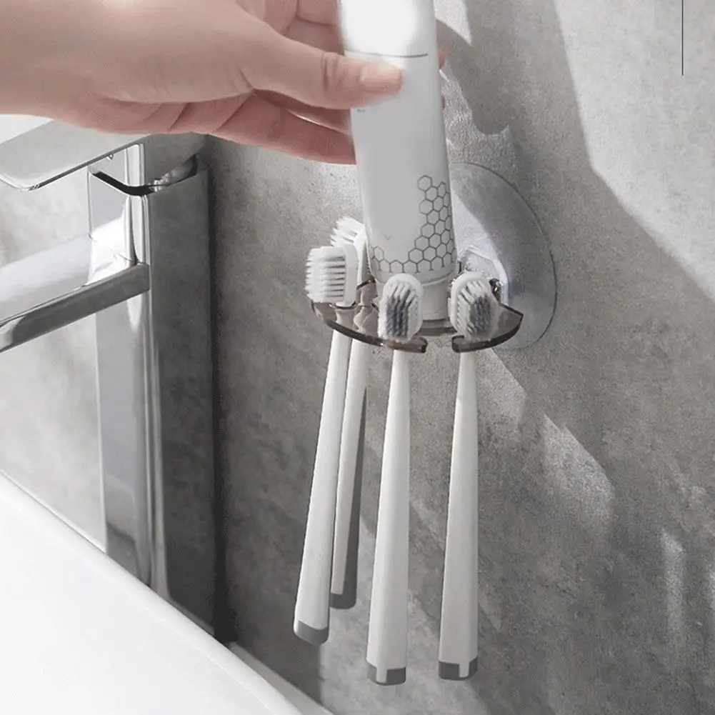 Punch-free Toothbrush Holder Toothpaste Holder Storage Rack Toothbrush Rack Bathroom Toilet Toothbrush Holder Set Accessories