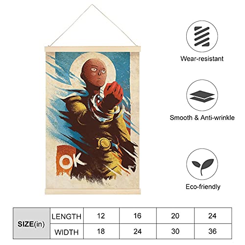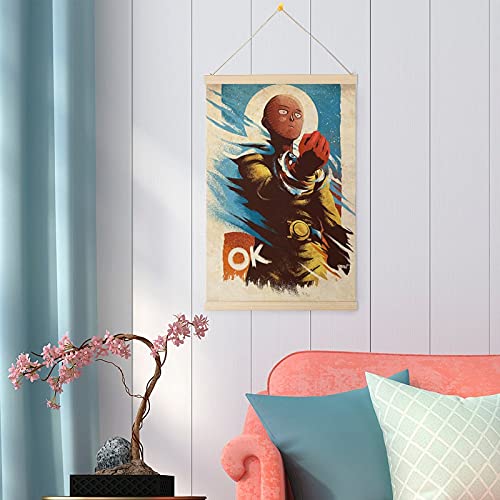 One Punch Man Giappone anime manga Hanger Poster Cornice Appeso Scroll Poster per camera estetica Tela Wall Art 30,5 x 45,7 cm