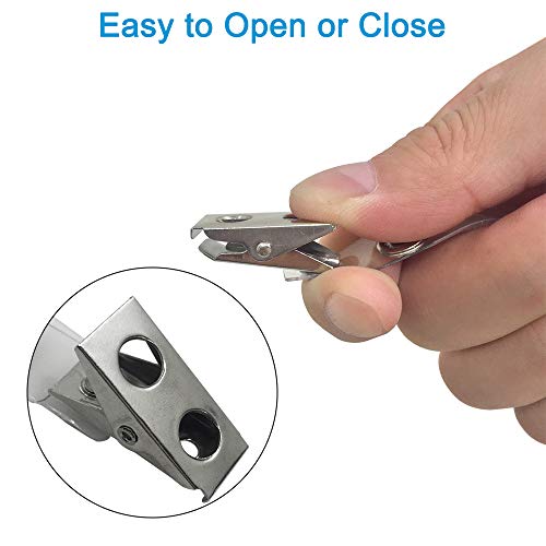 10 clip per badge: le clip in metallo con cinghie in PVC trasparente sono realizzate con materiali riciclabili al 100%, ideali per fiere, scuole, sicurezza o altri eventi che richiedono badge o documenti.