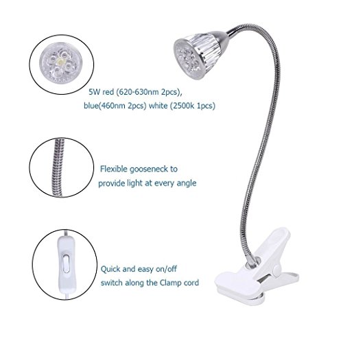Punson - Lampada a LED per coltivare le piante da appartamento con collo di cigno flessibile a 360 gradi, per ufficio, casa, giardino, serra (5 W)