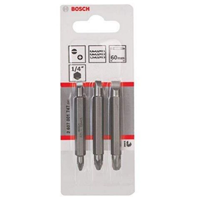 Bosch è un produttore leader di accessori per utensili elettrici ed è leader nell'innovazione con 125 anni di tradizione. L'obiettivo di Bosch è quello di sviluppare accessori innovativi per tutte le applicazioni, per lavori più efficienti e per nuovi materiali. Con oltre 8000 prodotti, Bosch offre gli accessori adatti per praticamente tutte le applicazioni, gli utenti e tutte le marche di utensili elettrici. Vite scanalata = S, Phillips = PH, Pozidriv = PZ, il nuovo supporto universale Multi Fit con il numero di parte 2 608 521 300 rende più facile l'uso delle punte a doppia estremità.