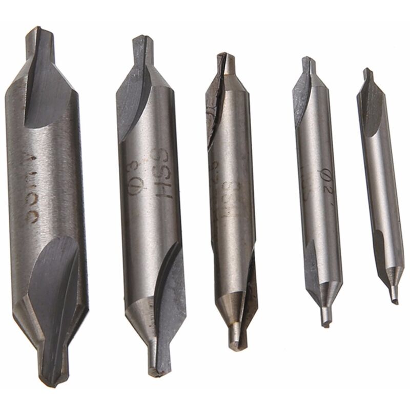 FUNZIONE - Le punte a centro ea punta sono tradizionalmente utilizzate per creare un foro conico per un centro del tornio per creare un punto di partenza per una punta elicoidale standard progettata per impedire che la punta si muova. DESIGN- Ogni punta ha una doppia estremità ed è rettificato con un angolo standard di 60 gradi incluso. Utilizzato per la produzione di supporti centrali in componenti o pezzi che richiedono lavorazioni tra i centri. MATERIALE- Materiale: HSS Caratteristiche: Queste punte da trapano vengono utilizzate nella lavorazione dei metalli per fornire un foro di partenza per un dimensione della punta da trapano. Possono anche essere utilizzati per realizzare una rientranza rastremata all'estremità di un pezzo per montare un centro del tornio. Realizzate in acciaio ad alta velocità, queste punte centrali sono di elevata durezza e buona resistenza all'usura. Ci sono 5 pezzi di punte centrali in questo set che possono essere utilizzate per praticare fori di diverse