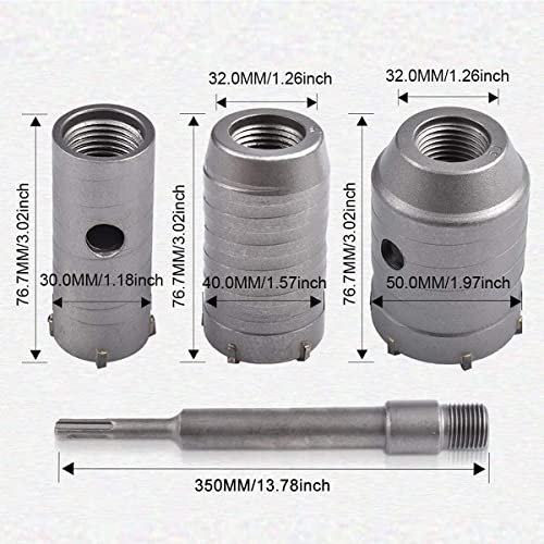 Punta da 350 mm SDS Plus Codolo Punta da muro per calcestruzzo Punta da trapano Sega per taglierina Calcestruzzo cementizio Punta da muro per pietra con espansione 30/40/50 mm (Argento)...