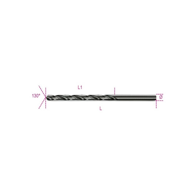 Punta elicoidale cilindrica rettificata brunita - Beta Serie: lunga Materiale: acciaio HSS R ≤ 800 N/mm² HV ? 750÷820 Codice prodotto Art. Ø mm L mm L1 mm g 004120238 412L 3,50 3,50 112 73 7