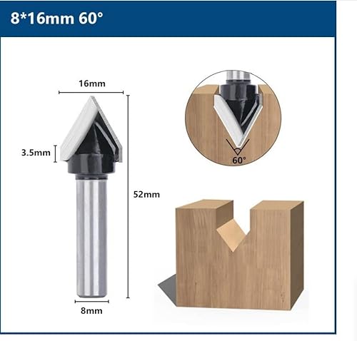 Punta del Router for Legno 8mm Gambo a V Punta for Incisione 3D 90 Gradi Fresa in Metallo Duro Diametro 22 32mm Fresa for Legno (Size: 8x16mm 60D)
