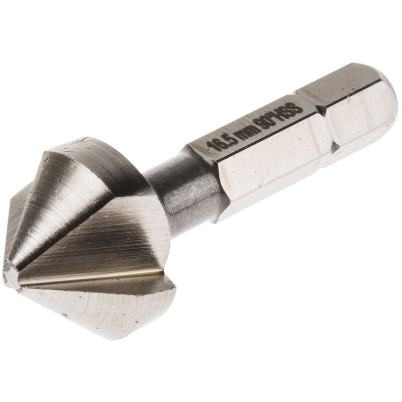 Diametro testa = 16.5mm Angolo svasatore = 90° Numero di taglienti = 3 Materiale = HSS Lunghezza totale = 40 mm Numero di pezzi = 1 Lunghezza gambo = 21.5mm Accessori per utensili elettrici. Lame temprate, accessori per utensili elettrici in acciaio HSS con gambi esagonali da 1/4 Eccellenti proprietà antiscivolo se utilizzato nei mandrini a tre ganasce