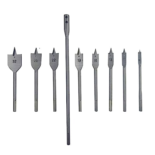 Punta a Testa Piatta per Legno,Punte per trapano per legno piatto Codolo esagonale Set 10 pezzi,Trancia per fori in acciaio ad alto tenore di carbonio Vanga (per Legno tenero, Truciolato, Ø 6-32 mm)