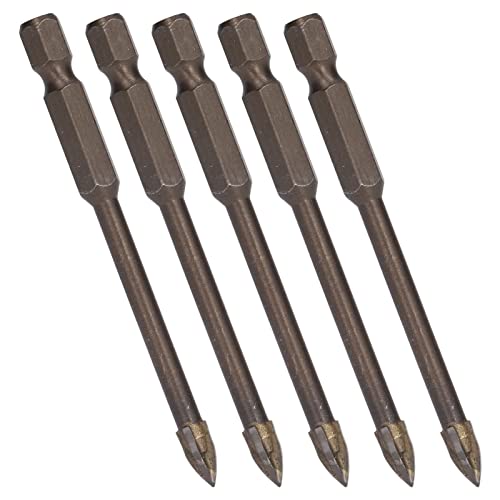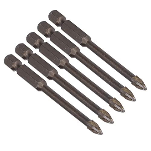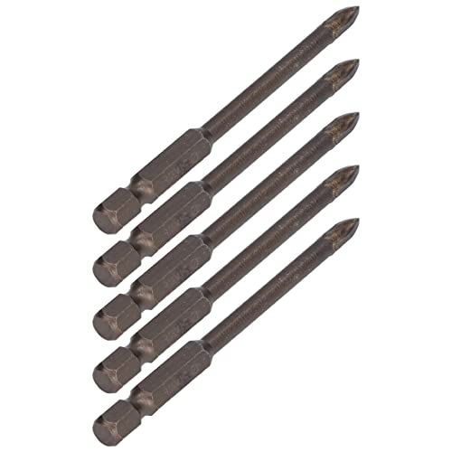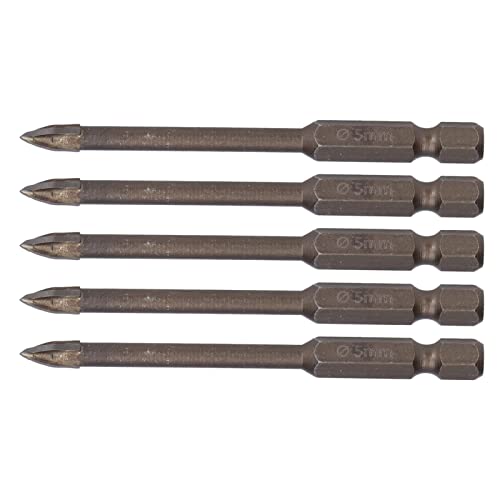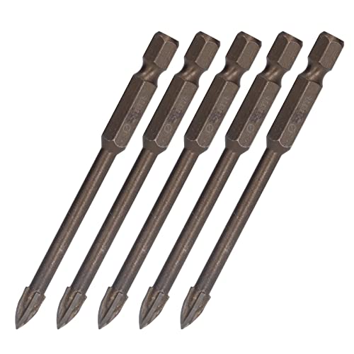 Punta da trapano a croce da 5 pezzi, strumento in lega dura per apertura del foro della punta del trapano in ceramica di vetro con gambo esagonale da 1/4 di pollice(5mm)