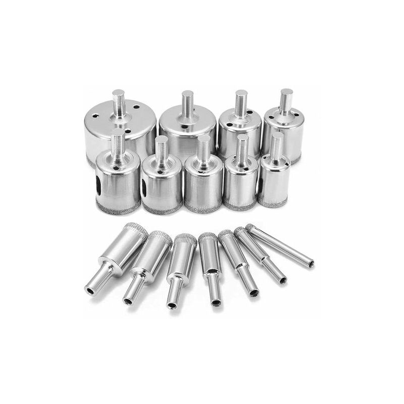 il rivestimento diamantato ispessito sulla parte superiore può fornire un'eccellente forza di taglio per ottenere il massimo effetto di foratura. Sega a tazza diamantata da 16 pezzi - Viene fornita con punte da trapano da 16 pezzi di diverse dimensioni, tra cui 6/8/ 10/12/14/ 16/18/20/22/25/28/30/35/40/45/50mm. Marcatura laser, la dimensione sarà più chiara rispetto ad altre dimensioni e non facile da indossare. Applicazione - Adatto per praticare fori in vetro, marmo, piastrelle di ceramica, vasi a blocchi, piastrelle in fibra di vetro, marmo ardesia, granito leggero, eccetera. Verrà utilizzato con tutti i trapani elettrici e trapani a percussione. Apertura del foro laterale e marcatura laser - Design del foro