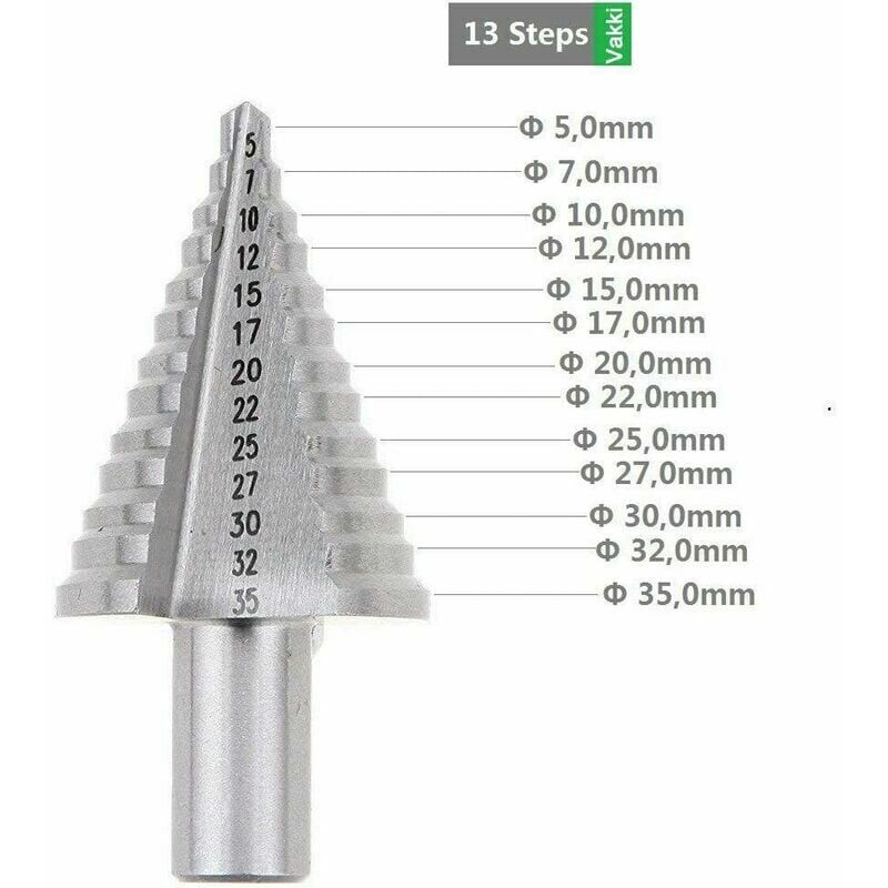 Dimensioni perfette: per una foratura precisa di diverse dimensioni da 5 a 35 mm di diametro, un trapano può gestire fori di diverse dimensioni. Materiali di alta qualità: realizzati in HSS di alta qualità, il rivestimento in titanio garantisce durata, riduce l'attrito e il calore. La punta in titanio è particolarmente adatta per la lavorazione di parti in rame e alluminio / acciaio fuso / acciaio per molle / parti in ghisa / ferro e altri materiali metallici.,Facile da forare: la posizione del foro di marcatura e il design a doppia scanalatura rendono la foratura più rapida e agevole così come una foratura precisa, non si consuma anche dopo un uso ripetuto. Materiali applicabili: acciaio, ottone, plastica, legno, rame, fibra di vetro, PVC, alette metalliche e alluminio. Ogni elettricista/tuttofare se lo merita È realizzato in alta qualità acciaio HSS di qualità Perforare oggetti duri, facilmente come tagliare il burro Realizzato in HSS È un acciaio complesso, contenente tungsteno
