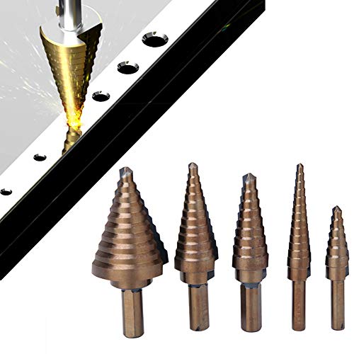 Punta da trapano a gradino HSS 5 pezzi, punta per trapano a punta con codolo triangolare, punta da trapano a triangolo conico interno per alesatore industriale, per piastre in ferro sottile, piastre i