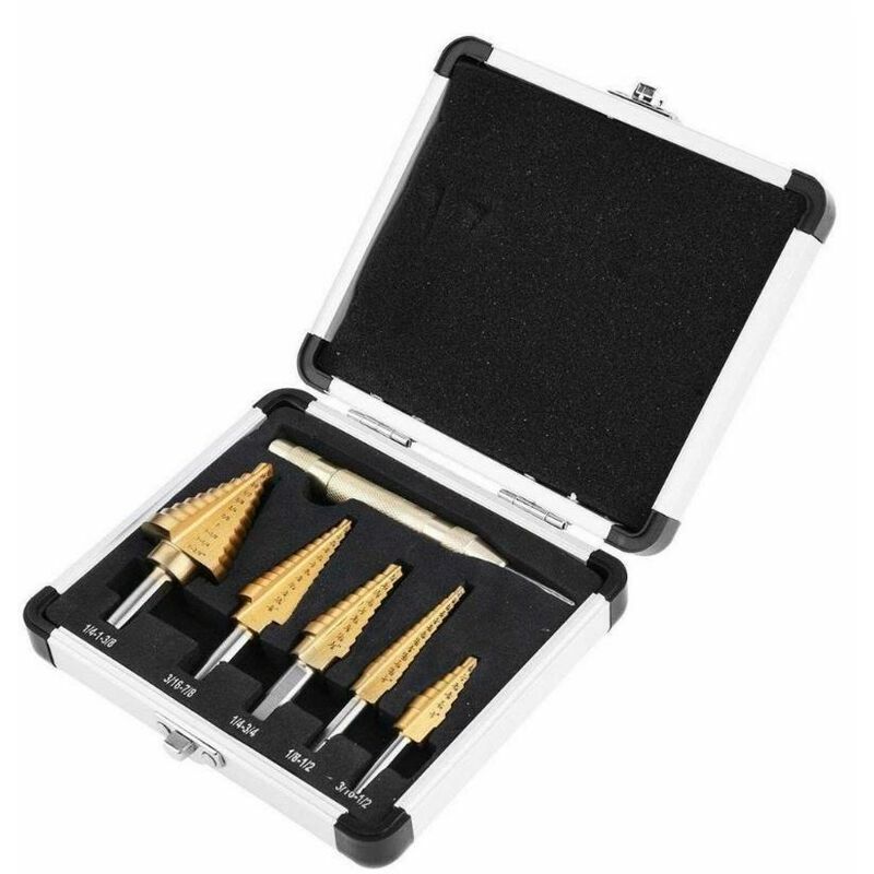 COSA OTTIENI: 1 x custodia in alluminio, 1 x 5-13 mm, 1 x 3-13 mm, 1 x 6-19 mm, 1 x 5-22 mm, 6-35 mm punte per trapano a gradino, 1 punzone centrale automatico e 1 x Twist Drill Bit. PUNZONE CENTRALE AUTOMATICO: il punzone centrale automatico fornisce un colpo automatico, ad alto impatto e caricato a molla sul cappuccio;