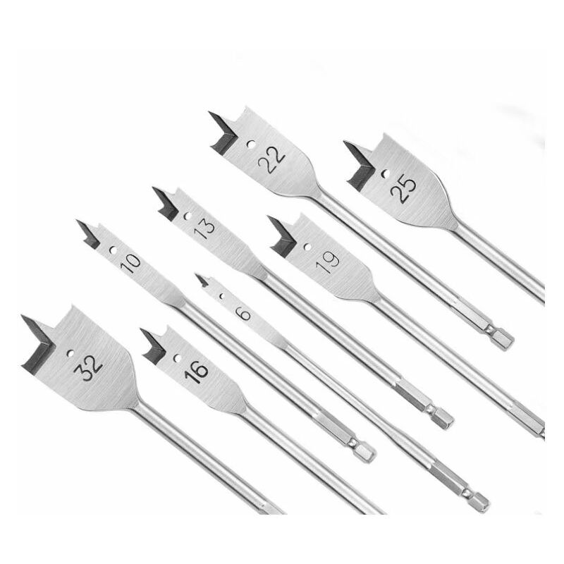 Design unico - La punta della scanalatura speciale è progettata per eliminare rapidamente i trucioli e aumentare la velocità di perforazione. Gli speroni a doppio taglio possono incidere all'esterno per pulire i fori e ridurre la rottura. Il gambo esagonale è compatibile con la maggior parte degli utensili da trapano sul mercato 【Materiale eccellente】Tutte le punte a vanga sono realizzate in acciaio al carbonio trattato termicamente che offre una lunga durata. La punta lucidata ha una forte resistenza all'usura 【Multifunzione】Questo set include 8 punte piatte ad alte prestazioni: 6, 10, 13, 16, 19, 22, 25 e 32 mm. Queste punte a vanga sono ideali per la lavorazione del legno 【Portatile organizzato】 Viene fornito con una custodia resistente e portatile, perfetta per mantenere i tuoi strumenti organizzati e portarli in diversi siti di lavoro Legno piatto Bit Punte per legno piatte per la lavorazione del legno in pratiche dimensioni: 6, 10, 13, 16, 19, 22, 25 e 32 mm. Lunghezza totale