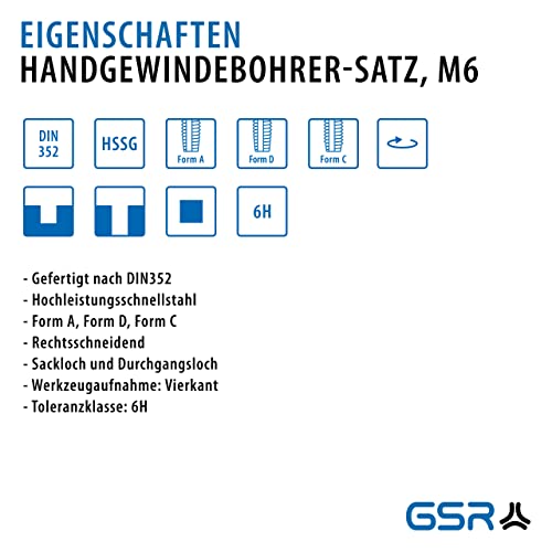 Punta per trapano professionale per filettatura M6 HSSG serie 3 utensili per filettare, filettatura per trapano a mano, sbozzatore, intermedio, finitore, maschio unico/maschio fintore