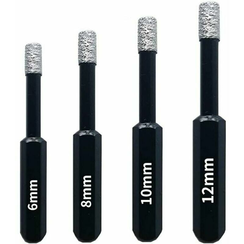 Dimensioni: 4 punte diamantate Punte diamantate ideali per gres porcellanato, granito, marmo, pietra, muratura, mattoni, ecc. Caratteristica: Materiale: acciaio inossidabile e rivestimento diamantato;