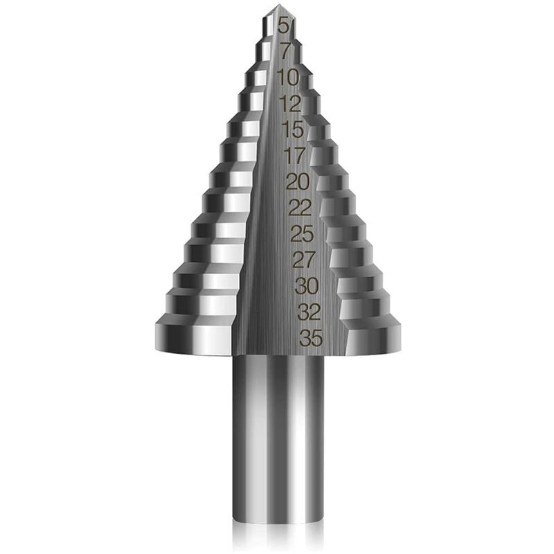 Dimensioni perfette: per una foratura precisa di diverse dimensioni da 5-35 mm di diametro, un trapano può gestire fori di diverse dimensioni. Materiale di alta qualità: il rivestimento in lega di titanio è realizzato in HSS di alta qualità, che può garantire una durata estremamente elevata e ridurre l'attrito e il calore. Le punte per trapano in lega di titanio sono particolarmente adatte per la lavorazione di pezzi sottili in rame e alluminio/piastre di ferro/pannelli di legno/piastre di plastica e altri materiali sottili. Facile da forare: la posizione del foro di marcatura e il design a doppia scanalatura facilitano la perforazione più veloce e agevole, oltre a una perforazione precisa. Dimensioni laser: le dimensioni sono incise al laser nel metallo in modo che non si usurino anche dopo un uso ripetuto. Materiali applicabili: plastica, legno, rame, ferro, fibra di vetro, PVC, pinna metallica e alluminio。(≤3mm) Descrizione del prodotto Punta per trapano svasatore Ogni