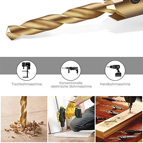 【Valore impostato:】 Il set di trapani include 7 punte da trapano di diverse dimensioni e 1 chiave inglese, le dimensioni sono: 3 mm, 4 mm, 5 mm, 6 mm, 7 mm, 8 mm, 10 mm, il diametro dello smusso è 15,8 mm, che può soddisfare tutte le tue richiesta.