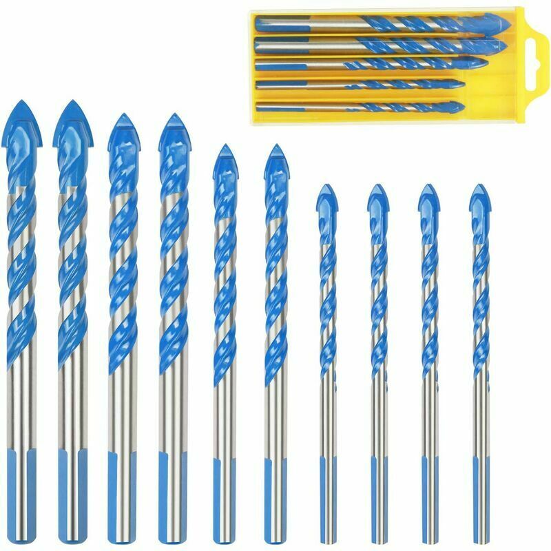 Set di punte da trapano triangolari - Viene fornito con punte da trapano da 10 pezzi insieme a due piccole scatole, facili da trasportare e organizzare. Include 4 diverse dimensioni (4 x 6 mm, 2 x 8 mm, 2 x 10 mm, 2 x 12 mm), sufficienti per soddisfare le diverse esigenze. Durevole e robusto: la nostra punta per trapano in tungsteno è realizzata in metallo duro di alta qualità qualità, buona resistenza all'abrasione ed estrema durezza. La punta in metallo duro è resistente e penetra facilmente in tutti i diversi materiali. Ampia applicazione: alta precisione per la centratura della foratura, queste punte per porcellana sono perfette per praticare fori su vetro, piastrelle, piastrelle, specchio, legno, ceramica, marmo, muro di mattoni e altri materiali duri e fragili. Design speciale: le punte triangolari con design dell'alloggiamento di tipo U, per la perforazione, rimuovono rapidamente la polvere, senza lasciare macchie. La punta da trapano con gambo a 3 punte consente una presa