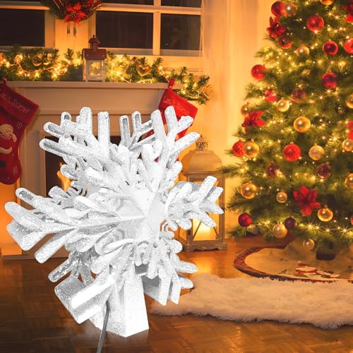 【Aggiunta scintillante al tuo albero di Natale】- Questa cima d'albero a forma di fiocco di neve d'argento ha un design 3D a cavità con polvere d'argento scintillante, brillante e accattivante, che aggiungerà più bellezza al tuo albero di Natale e lo renderà unico e attraente. Pertanto, questa cima d'albero è ideale per decorazioni d'interni, come soggiorni, uffici, supermercati.