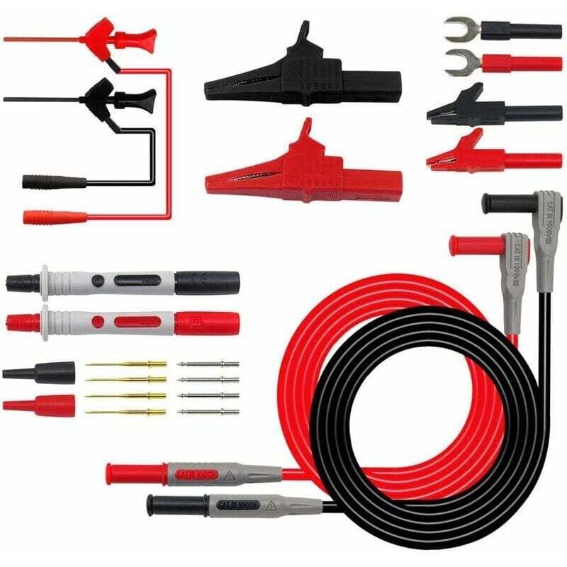 La spina a banana del cavo di prova è realizzata in materiale di rame di alta qualità, che è più conduttivo e durevole. . Cavo lungo 1 metro, più comodo da usare. . Il kit è dotato di diversi tipi di connettori, più potenti. . Le punte dei cavi di test di qualità garantiscono connessioni efficienti e stabili e risultati di misurazione accurati. . L'involucro esterno del prodotto è realizzato in plastica ABS, che è resistente e ha una presa migliore. .