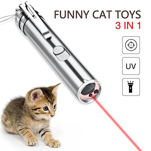 3 in 1 multi-funzione. La luce rossa fornisce molto piacere per cani e gatti, si prega di non puntarla direttamente di fronte agli occhi del gatto. Lampada tascabile per un uso quotidiano per interni ed esterni. L'intervallo di proiezione ottimale è di circa 5 m. La luce UV può identificare l'autenticazione di una moneta, ispezionare i liquidi degli animali domestici.
