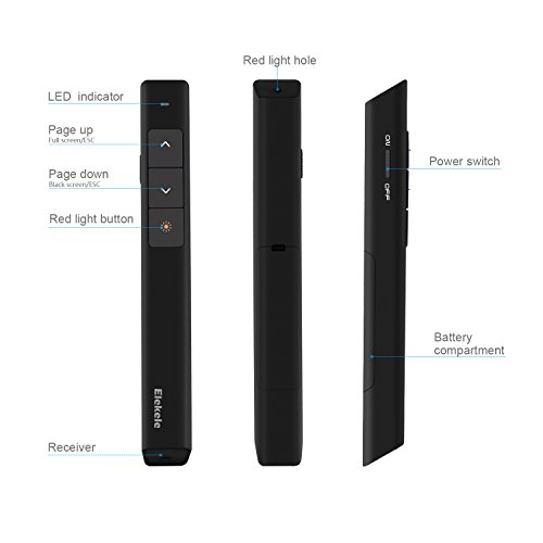 Puntatore Laser Multimediale Professionale, Presentatore Power Point 2.4 Ghz PC Office Volume, Presenter Wireless 100 m Lunga Durata (Elekele)