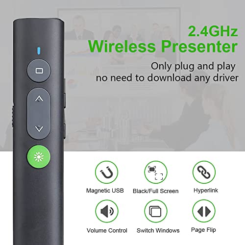 USB C/A 2 in 1 Puntatore Verde Wireless Presenter Ricaricabile, Hyperlink Volume Puntatore Presentazioni Clicker per Presentazione Powerpoint Telecomando Slide PC per Mac iPad Computer Laptop