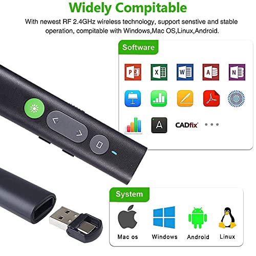【Ampiamente Compatibile】ll telecomando presentazioni powerpoint supporta i sistemi: Windows 2003 / XP / Vista / 7/8/10/ 11, Mac OS, Linux, Android;