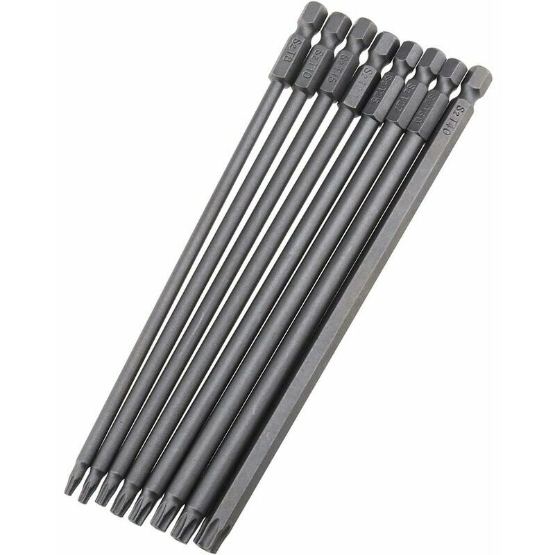 Ampio utilizzo: adatto per cacciavite elettrico manuale, cacciavite, trapano elettrico, utensili pneumatici e utensili elettrici, ecc. Alta qualità: realizzato in acciaio S2 di alta qualità. Gambo esagonale da 6,35 mm. Forte magnete, buona fattura, può aspirare facilmente le viti. Varie dimensioni: tra cui T8, T10, T15, T20, T25, T27, T30, T40. Lunghezza totale: 150 mm con buon effetto allungante. Scegli la lunghezza che ti serve. Tipo di testa: Torx