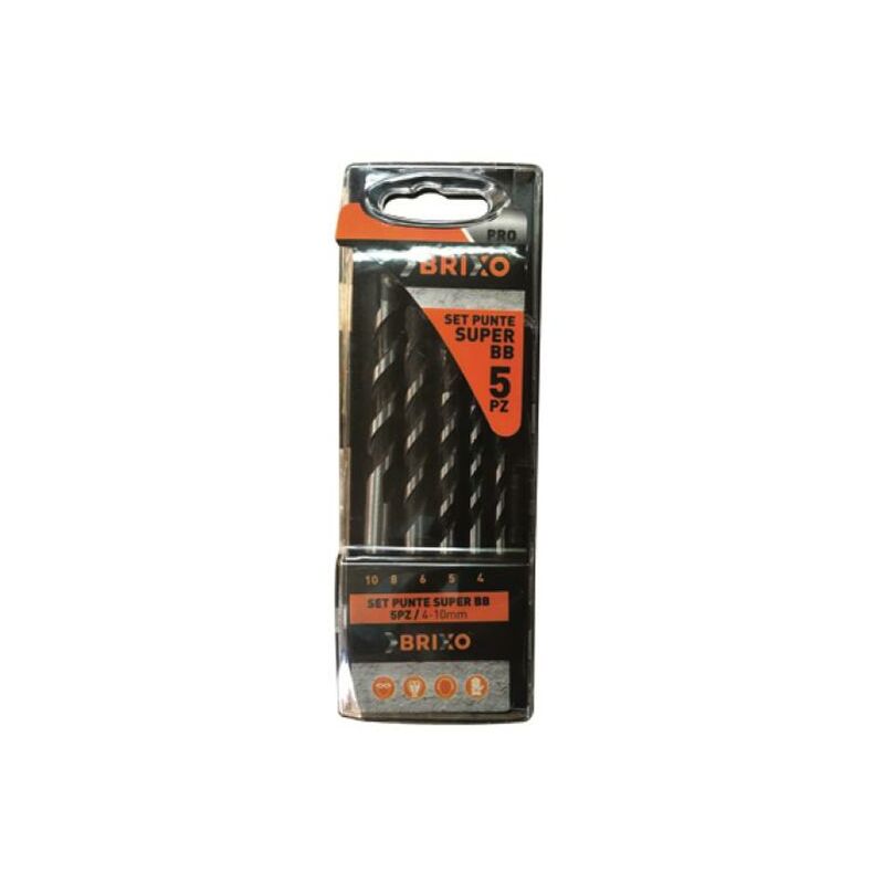 Set punte Super BB 5 pezzi: 4-5-6-8-10 mm. In acciaio cromato, Roto-percussione, per calcestruzzo, cemento armato, mattoni. DIN8039