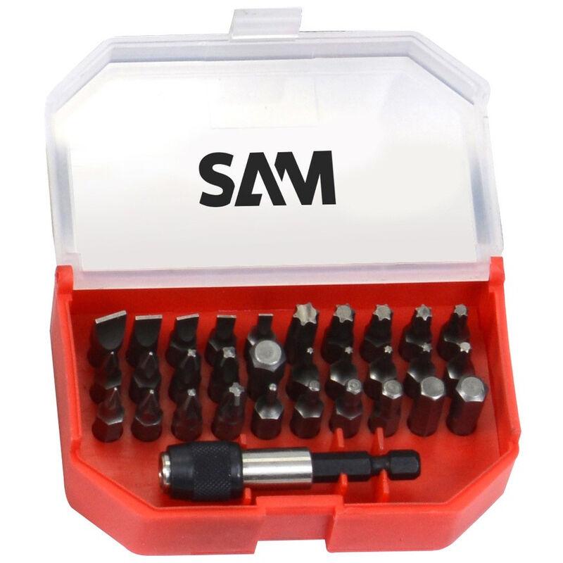 Dettagli: Set di 30 punte più utilizzate + 1 portapunte Coperchio trasparente Compatto: entra facilmente in tasca o nella cassetta degli attrezzi Clip da cintura integrata Composizione: X1 portabit da 1/4 X30 bit di cacciavite da 1/4: Slot: 3 - 4 - 4,5 - 5,5 - 6,5 Phillips®: 1 x n°1 - 3 x n°2 - 2 x n°3 Pozidriv®: 1 x n°1 - 3 x n°2 - 2 x n°3 6 Vanghe: 2 - 2,5 - 3 - 4 - 5 - 6 mm Torx®: 10 - 15 - 20 - 25 - 30 - 40