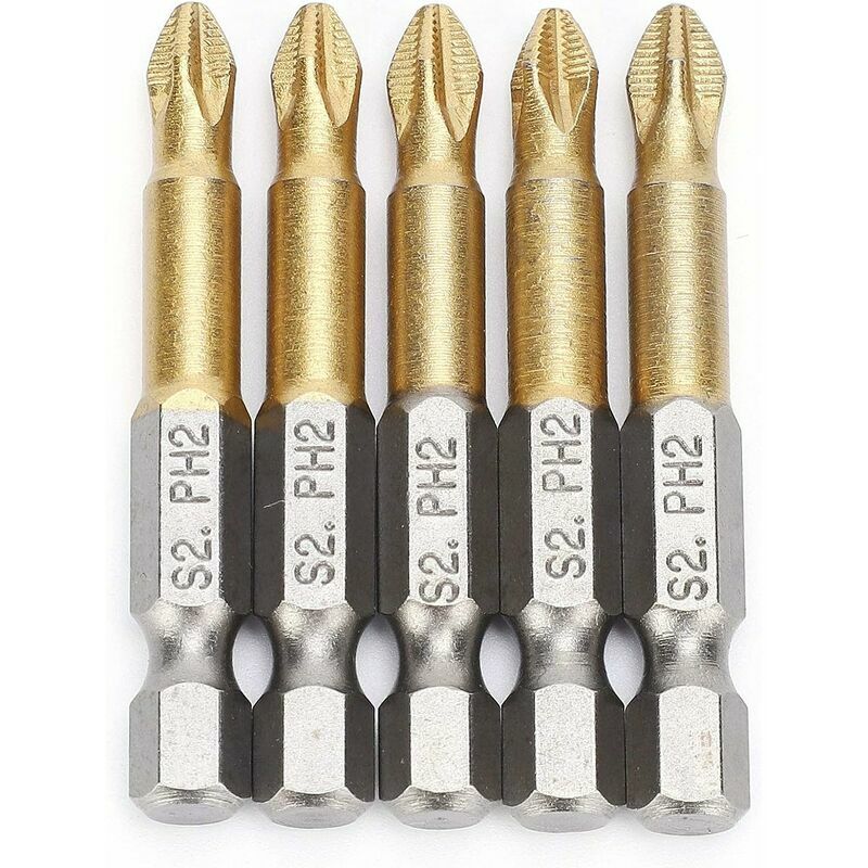 1/4" resistenza allo scivolamento del gambo esagonale a testa phillips Realizzato in acciaio legato S2 che è un materiale hardware comunemente usato con elevata durezza Forte magnete, buona fattura, alta precisione La superficie placcata in titanio è liscia e resistente all'usura. Lunghezza totale: 50 mm, Tipo: PH2