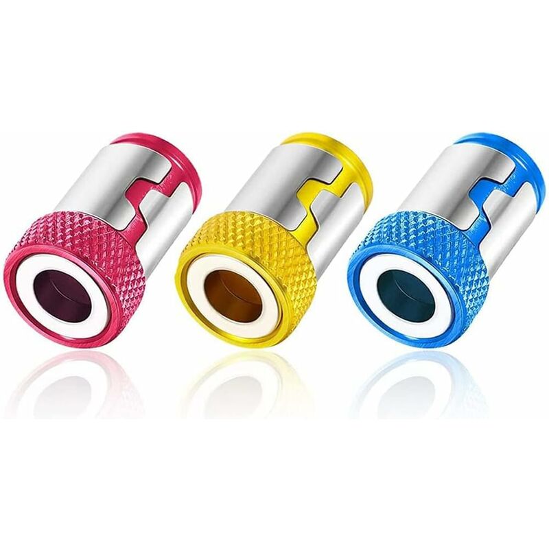 Adatto per punte per avvitatori elettrici da 6,35 mm, utilizzare per punte esagonali, Torx, a taglio, Phillips Realizzato in acciaio, pregevole fattura, alta efficienza e lunga durata Forte il magnetismo impedisce alla vite di cadere, ma non piacerà a un cacciavite o alla vite Facile da usare. Basta inserire la punta del cacciavite nell'anello magnetico, la vite può essere raccolta facilmente Blocca le viti con precisione e scatta saldamente riducendo l'abrasione di vite e cacciavite Taglia: Circa 15*21 mm Quantità: 3 pezzi Colore: rosso + giallo scuro + blu ladaceae