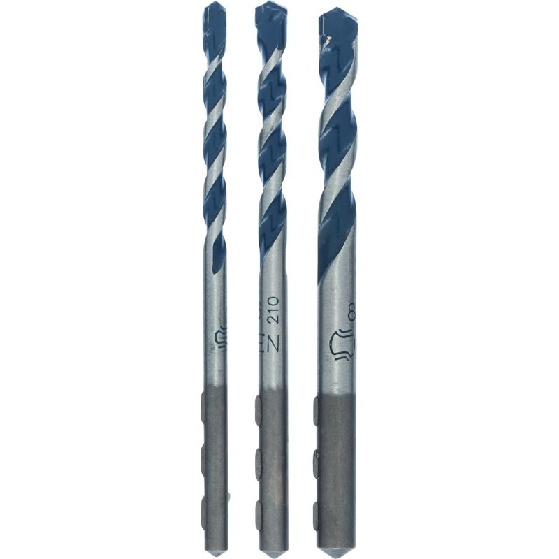 BOSCH - SET 3 PUNTE PER CALCESTRUZZO BLUE GRANITE 5/6/8MM Punta ad elevate prestazioni con due taglienti diamantati e un design a 2 spirali per una buona asportazione della polvere e una foratura più rapida Power-Grip-System per trasferire la potenza dall'utensile alla punta Punta a prova di martello secondo ISO 5468 con punta di centraggio attiva activeteq per il taglio attivo nel calcestruzzo In metallo duro con dimensioni grana fini per una durata lunga e la migliore resistenza Compatibilità: Utilizzabili con tutti i trapani a percussione Set di punte da calcestruzzo per la lavorazione professionale di calcestruzzo, pietra arenaria calcarea, pietra naturale e pietra artificiale