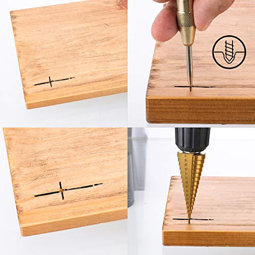 Punte Coniche MOHOO 3 PCS Set HSS Punti di Trapano a Gradini Titanio Rivestito (4-12mm, 4-20mm e 4-32 mm) con Punzone Centrale Automatico per Forature di Precisione Fori di Diverse Dimensioni