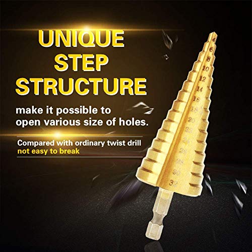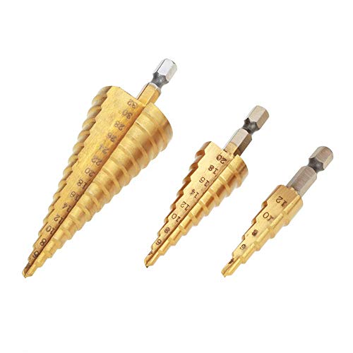 Punte Coniche, 3 Pezzi Punte per Trapano a Gradini in Metallo HSS, Fresa Conica Trapano a Gradini per Plastica, Legno, Alluminio, Lamiera di Metallo, 4-12/4-20/4-32mm