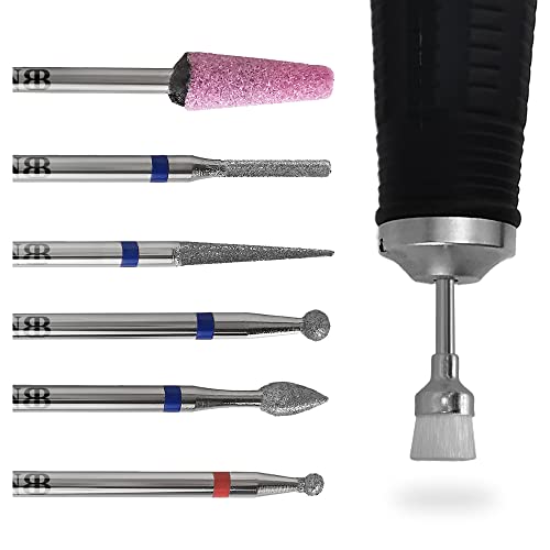 NBB 1 set di punte diamantate per chiodi, gambo da 2,35 mm, punte diverse con spazzola, punta manicure con rivestimento diamantato al 100%, punta di bellezza per macchina da manicure elettrica