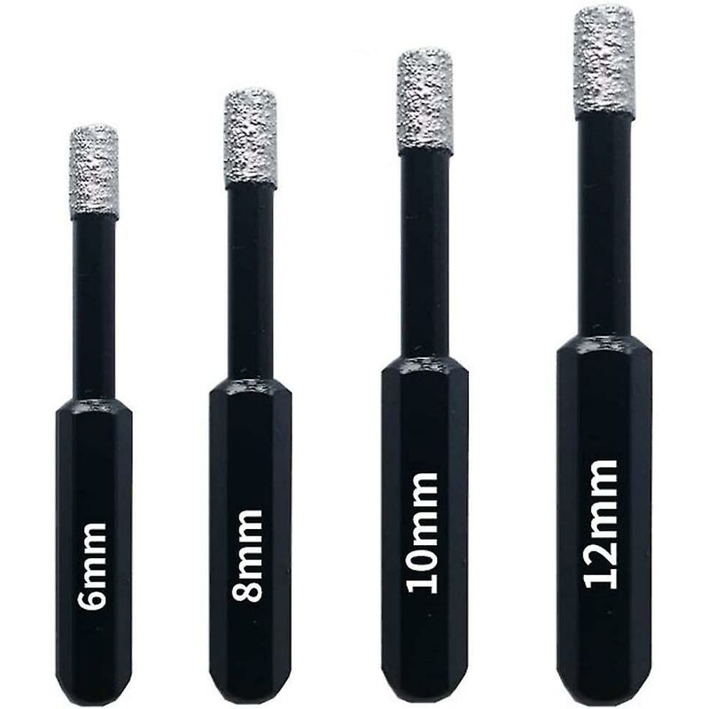 Dimensioni: 4 pezzi Punte diamantate Punte diamantate Punta diamantata ideale per gres porcellanato, granito, marmo, pietra, muratura, mattoni ecc. Caratteristica: Materiale: acciaio inossidabile e diamante rivestito: 6 mm Rivestimento diamantato fino a 10 mm Dimensioni: 6 mm, 8 mm, 10 mm, 12 mm Confezione: 4 punte diamantate brasate Punte sottovuoto brasate calde: utilizzo di punte per punte diamantate brasate sottovuoto 1. Non utilizzare queste punte con modalità martello 2. Non installare queste punte solo su un trapano a colonna, non su un cordless trapano (potenza insufficiente) 3.Solo per la perforazione delle piastrelle, non consigliato.per il materiale dietro la piastrella 4.Per la perforazione orizzontale, basta dare una leggera pressione, per la perforazione verticale, il peso della macchina darà abbastanza pressione.trapano secondo le seguenti istruzioni: 1) Posizionare il trapano con un angolo di 45 gradi 2) Forare fino all'inizio del foro;