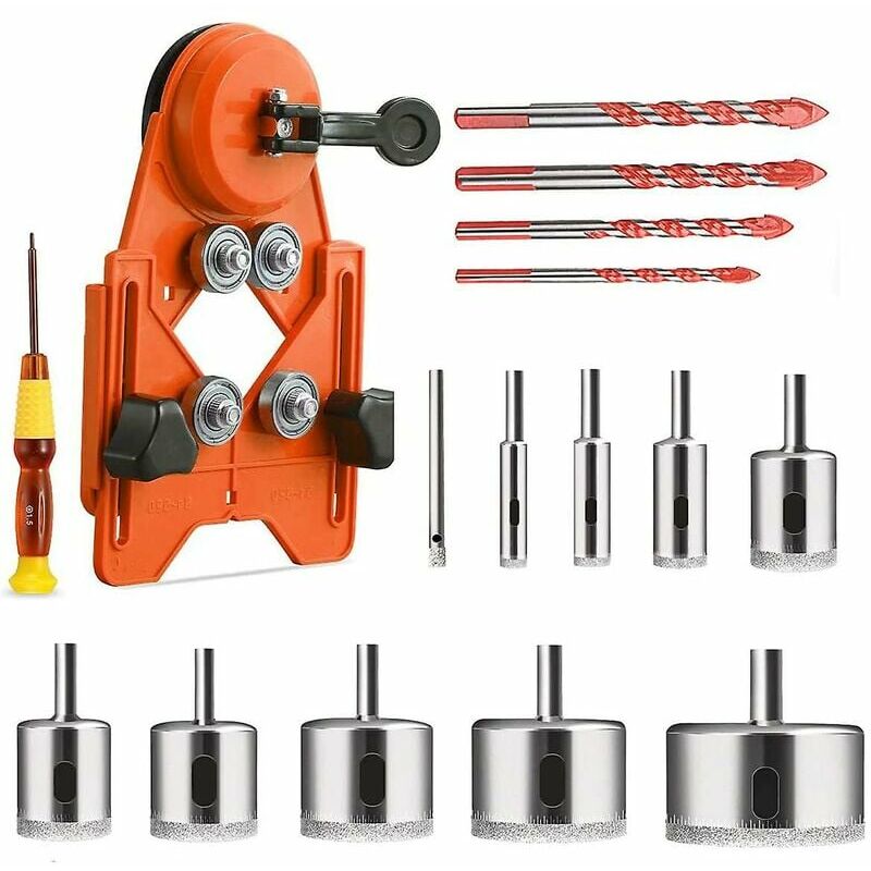 Punta da trapano moltiplicatore: questo set include 10 punte da trapano per soddisfare diversi requisiti, tra cui 6 mm, 8 mm, 10 mm, 12 mm, 20 mm, 25 mm, 30 mm, 35 mm, 40 mm, 50 mm. Il foro diamantato è stato finemente lavorato e resistente all'usura, i vantaggi di assenza di scheggiature, alta velocità, nitidezza e resistenza all'usura. Guida per sega a tazza regolabile: non devi preoccuparti graffiare le piastrelle durante la perforazione del foro. La nostra sega a tazza regolabile con ventosa è adatta a seghe a tazza di tutte le dimensioni fino a un diametro del foro di 3-1/4''. Antiscivolo: il gambo triangolare consente di trattenere le punte ed evitare che scivolino . La robusta punta in metallo duro con design appuntito può perforare facilmente diversi materiali come piastrelle, cemento, mattoni, vetro, plastica, legno, ecc. Design unico: i grandi fori di passaggio sopra la punta facilitano la penetrazione di acqua di raffreddamento e la fuoriuscita di trucioli e altre