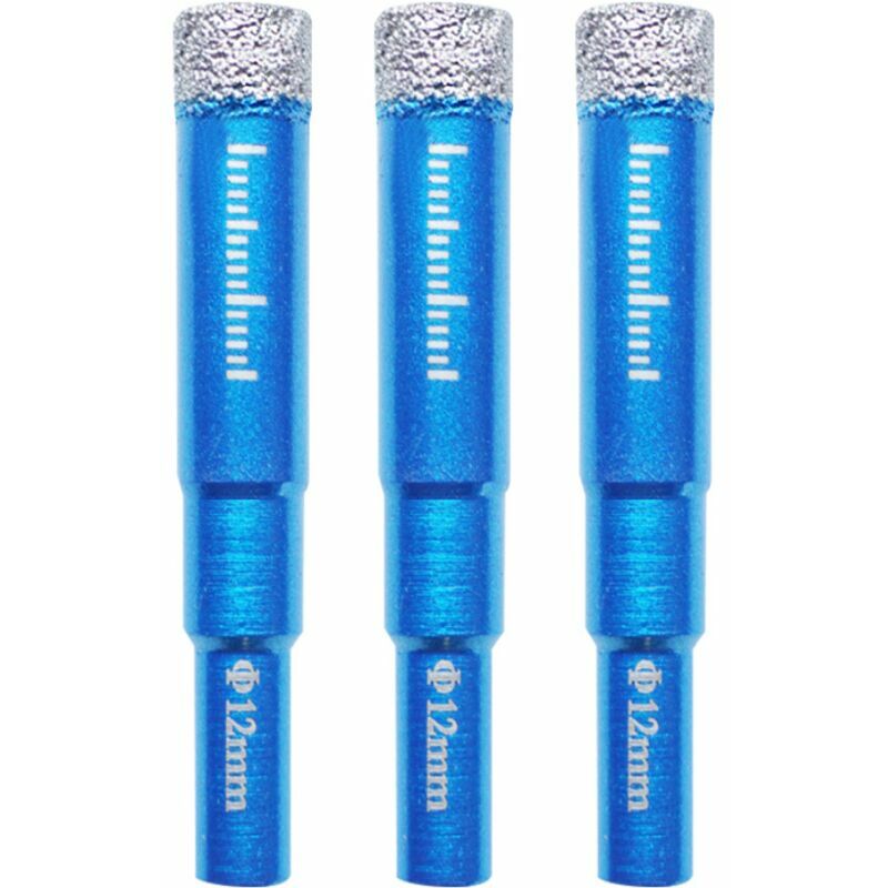 Set di 4 punte diamantate a secco - punte 6, 8, 10, 12 mm. Ideale per praticare fori puliti in materiali duri. Griglia diamantata di alta qualità resistente alle alte temperature per una foratura efficiente. Riempito con cera di raffreddamento, adatto per la foratura a secco. Non è necessario il raffreddamento durante la foratura, poiché la punta contiene cera di raffreddamento all'interno. Tuttavia, può aumentare la durata della punta. Punte diamantate professionali per forare porcellana, vetro, piastrelle dure e lastre, porcellana, granito, marmo, quarzo, pietra calcarea, fibra di vetro, terrazzo, muratura, arenaria Le punte diamantate di alta qualità e resistenti alle alte temperature forniscono una perforazione efficiente e pulita. Riempito con cera refrigerante, adatto per la foratura a secco. Tuttavia, per una maggiore durata, si consiglia di utilizzare acqua o refrigerante. Diametro punta: 6, 8, 10, 12 mm Utilizzo: praticare i fori con un cacciavite ad angolo fino a 30°. Quindi